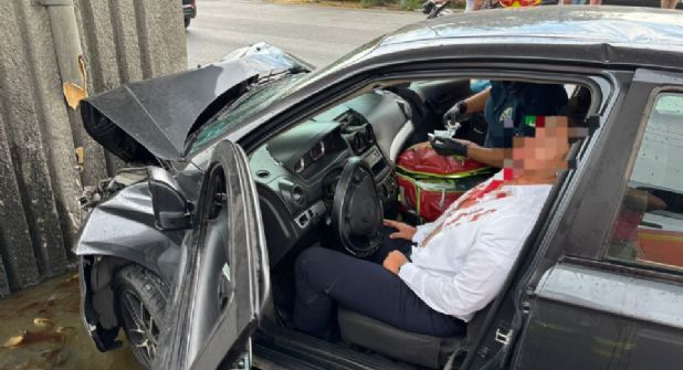 Monterrey. – Un conductor requirió ser atendido por elementos de emergencia esta mañana de lunes, luego de protagonizar un estrellamiento contra un muro de Metrorrey ubicado en la avenida Aztlán.