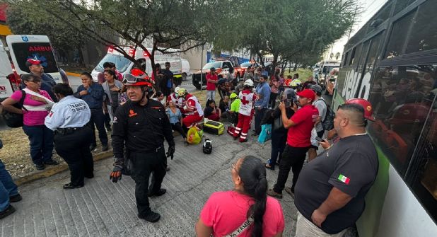 Monterrey.- Un accidente vehicular entre dos camiones de pasajeros de las rutas 185 y 214 en el municipio de Guadalupe, Nuevo León, dejó a 31 personas lesionadas y movilizó a los cuerpos de emergencia de la zona.