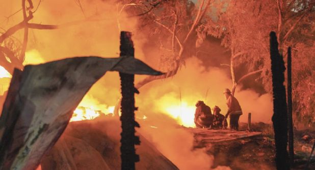 García. - Un incendio en un terreno baldío sobre la lateral de la Avenida Lincoln, a la altura de Los Frailes, dejó sin su tejaban a tres familias.