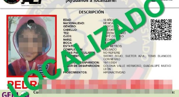 Guadalupe. - Luego de que familiares del menor Pedro Tadeo pidieran apoyo de la ciudadanía y de las autoridades para dar con su paradero, se informó que el niño fue localizado con vida.