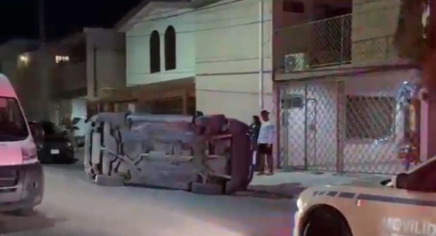 De acuerdo con el reporte emitido por Protección Civil de Monterrey, el conductor perdió el control de su vehículo al grado de que este quedó semivolcado en plena calle habitacional.