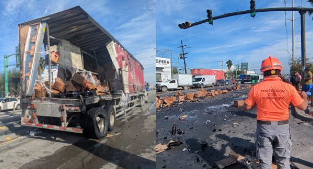 Accidente provoca rapiña de cerveza en Guadalupe