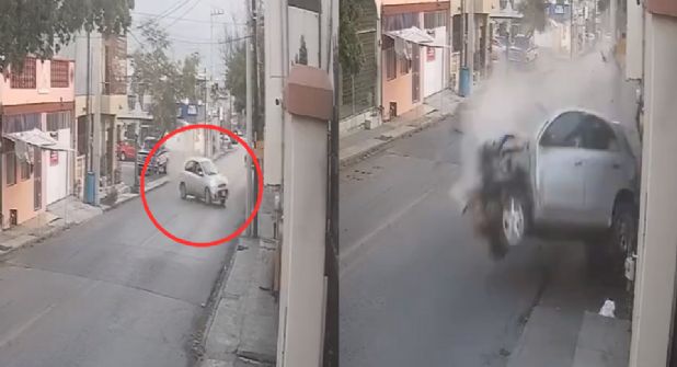 Una cámara de videovigilancia captó las imágenes que ya fueron publicadas en redes sociales, y en las cuales se aprecia como el conductor del automóvil pierde el control del mismo.