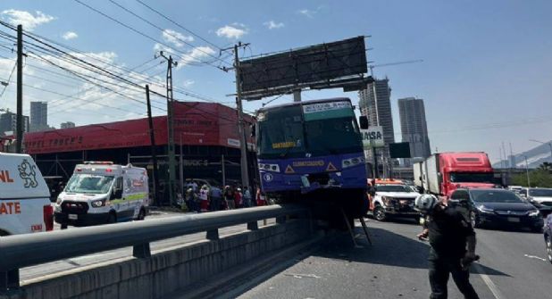 Elementos de Protección Civil de Nuevo León acudieron a la zona y se encargaron de valorar al conductor y pasajeros, quienes fueron retirados del camión de la Ruta 17.