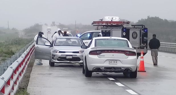 Una vez en el lugar, se encontraron con un automóvil KIA Río color gris con placas SYT-127-A de Nuevo León, estacionado en la circulación norte de la autopista. La atención se centró en la cajuela del vehículo, que al ser abierta se descubrió el cuerpo de un hombre.