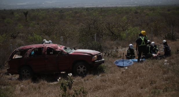 García.- Un accidente vial tipo volcadura, en el kilómetro 22 de la Carretera a las Grutas de García, en el municipio de García, dejó un saldo de dos muertos y seis heridos.
