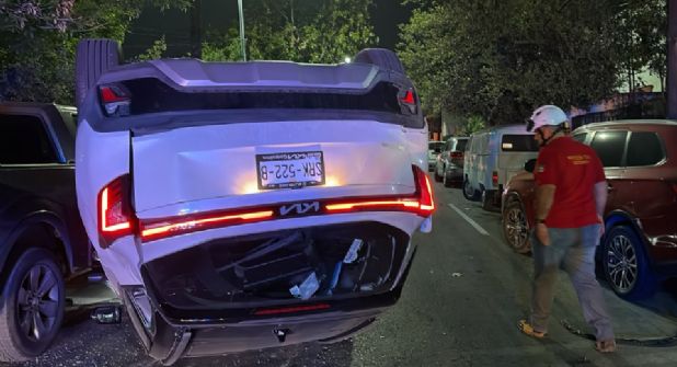 Monterrey. – Un hombre en presunto estado de ebriedad protagonizó un choque múltiple con volcadura en el municipio de Monterrey.