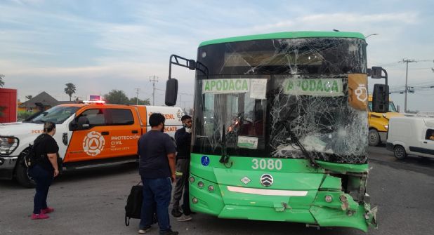 Apodaca. – Un camión de transporte público de la ruta 527 y otro de carga colisionaron la mañana de este lunes 1 de abril y dejó como saldo de al menos 10 personas lesionadas en el municipio de Apodaca.