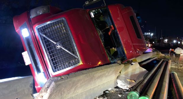 Fue al filo de las 20:00 horas de la jornada de este miércoles, cuando se reportó el accidente de un tráiler que llevaba carga pesada y que debido al exceso de velocidad terminó por perder el control y estrellarse en los muros de contención que separan las distintas direcciones.
