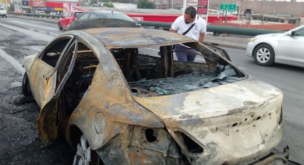 Al lugar también llegaron elementos de Tránsito de Guadalupe llegó, quienes solicitaron una grúa para que se llevará el vehículo incendiado y, de esta manera, agilizar la vialidad en este punto de la avenida Miguel Alemán.
