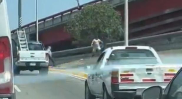 En el video difundido a través de X, antes Twitter, se aprecia como los tripulantes de una camioneta Ford Ranger de color blanco descienden del vehículo y empiezan a recoger objetos del piso.
