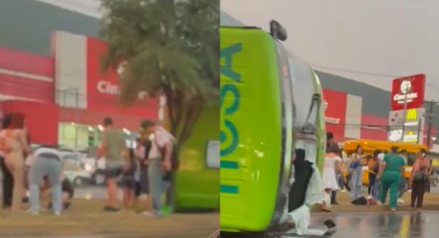 Tras el hecho, a través de aplicaciones de mensajería instantánea circuló un video tomado por un automovilista en el que se aprecia que el camión urbano, perteneciente al sistema “Me Muevo” quedó completamente de lado en la carpeta asfáltica.