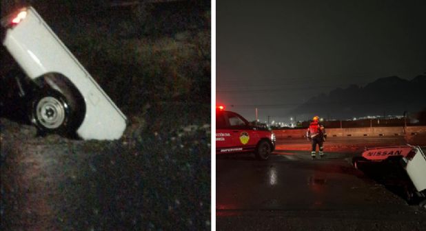 A través de redes sociales se dio a conocer que el conductor de una camioneta se salvó de milagro luego de que su vehículo fuera arrastrado por la corriente y cayera en un canalón en el municipio de García.