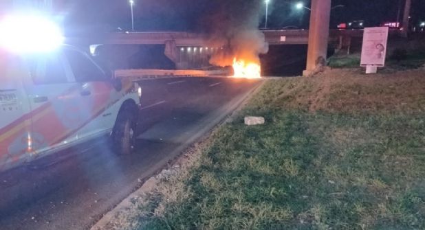 Bomberos de Guadalupe y Nuevo León también acudieron a la escena e hicieron los trabajos correspondientes para sofocar las llamar que sobresalían debajo de este puente.