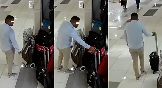 Segundos después, en el mismo punto se acercó una mujer que vio las maletas, no así el hombre que sustrajo una de ellas.