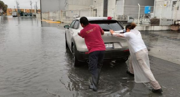 Entre estos casos, los brigadistas trabajaron para retirar a un automóvil en la avenida Santa Bárbara, entre las avenidas Barragán y Nexxus, sitio donde históricamente se presentan acumulaciones de agua.