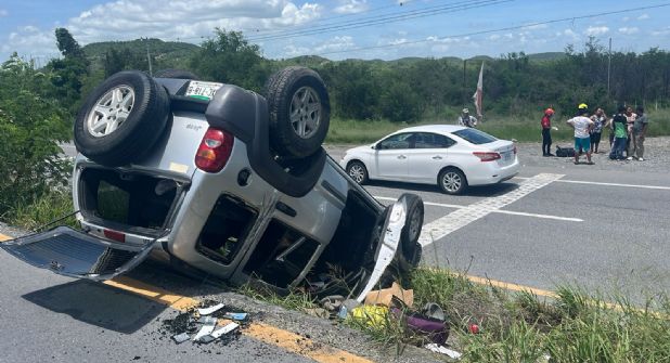 Montemorelos.- Un accidente automovilístico ocurrido en la Carretera Nacional dejó como saldo un total de seis personas lesionadas y una más sin vida.
