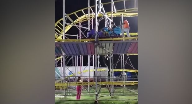 Fue a través de un video en redes sociales en el que asistentes a la feria reportaron que parte de la montaña rusa se desprendió de la estructura lo cual provocó que uno de los coches del juego quedará detenido en las alturas.