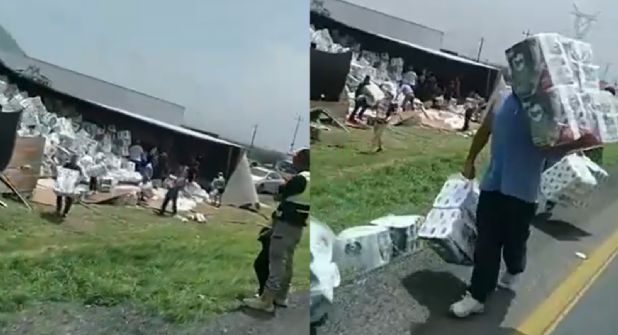 A su vez, en el video es posible observar que las personas aprovecharon el accidente y acudieron hasta este punto para llevarse más de un paquete de papel higiénico.