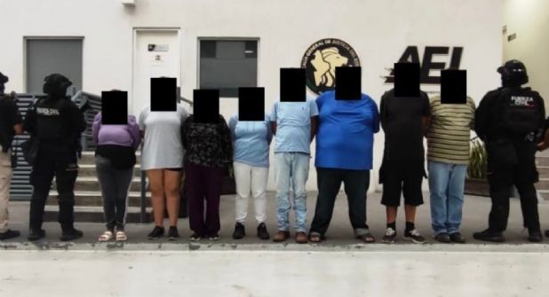 Los sospechosos fueron identificados como: Julio “N”, de 33 años de edad; José “N” y Xóchitl “N”, de 28; Juan “N”, de 46; Hermina “N”, de 50; Humberto “N”, de 51; Lorena “N”, de 52 y Vianney “N”, de 18 años.