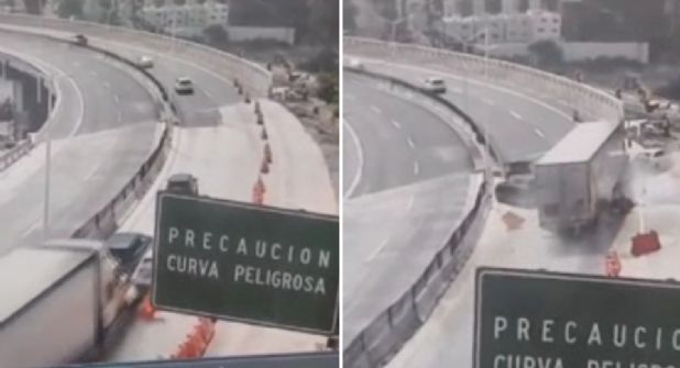 El clip, captado por una cámara de seguridad, muestra al tráiler acercándose a gran velocidad a una de las curvas de esta vía, impactando incluso a tres vehículos que iban delante de él, y cuyos conductores resultaron lesionados.
