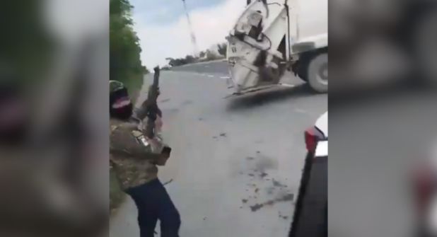 En el clip se observa a los hombres atacando a balazos a policías mientras dan instrucción a un camión para provocar un bloqueo en el sitio.