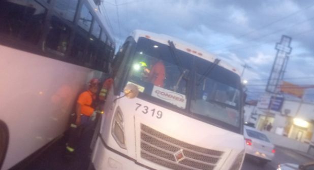 Santa Catarina, NL.- La pasajera de un transporte de personal sufrió la amputación accidental de su brazo derecho, luego de que la unidad en la que viajaba participara en un percance vial con otra unidad similar.