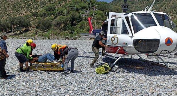 Por lo que aterrizó al ejido Rancho Viejo un helicóptero de Protección Civil, en auxilio a la fémina, para posteriormente bajarla a tierra en un área segura.