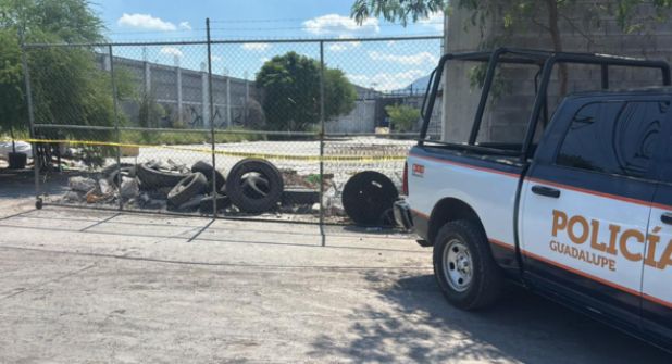 Al sitio acudieron elementos de la Policía de Guadalupe, quienes confirmaron que en el terreno se encontraba un hombre acostado boca abajo. El cuerpo estaba cubierto con una sábana en colores amarillo, rojo y azul, mientras que en sus pies aún portaba unos tenis negros con suela blanca.