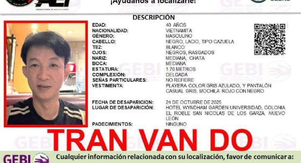 De acuerdo con la ficha, Tran Van Do, quien fue visto por última vez en el hotel Wydham, ubicado en la colonia El Roble del municipio de San Nicolás.
