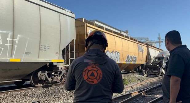Salinas Victoria.- Un tráiler chocó contra el tren, durante la tarde de este jueves, accidente que dejó el saldo de una persona muerta.