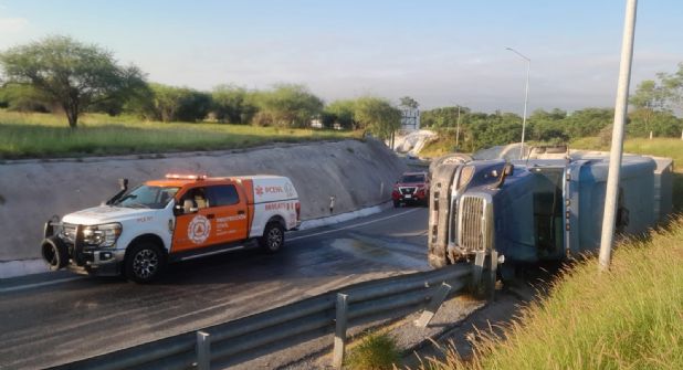 Asimismo, se indicó que la Red Estatal de Autopistas de Nuevo León (REANL) trabajó en la atención de un derrame de hidrocarburos ocasionado por la unidad volcada.
