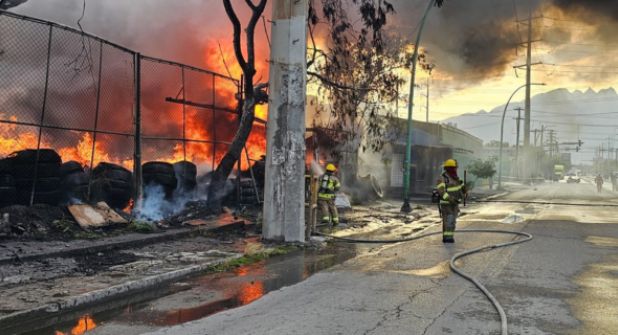 San Nicolás.- La tarde de este sábado, elementos de Protección Civil de Nuevo León atendieron un incendio registrado en un negocio de llantas, en San Nicolás, el cual generó una intensa movilización por parte de autoridades estatales y municipales.