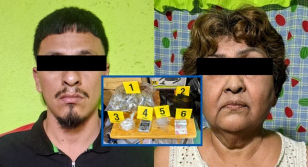 De manera paralela, otro equipo llevó a cabo un cateo en la colonia Crispín Treviño, específicamente en un domicilio ubicado sobre la calle El Mezquite. En este segundo punto, además de encontrar material relacionado con la venta de droga, los agentes detuvieron a dos personas identificadas como Jonathan “N”, de 27 años, y Bertha “N”, de 64 años. Dentro de la propiedad fueron localizadas dosis de vegetal verde seco con apariencia de marihuana, así como varias porciones de sustancia blanca en polvo compatible con cocaína. También se aseguraron una báscula, fragmentos de bolsas de plástico y dinero en efectivo.