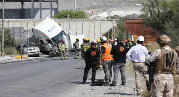 Santa Catarina. - Un accidente ferroviario registrado la mañana de este lunes en el municipio de Santa Catarina movilizó a cuerpos de emergencia estatales y municipales, luego de que un tren impactara una pipa cargada con 45 mil litros de gasolina.