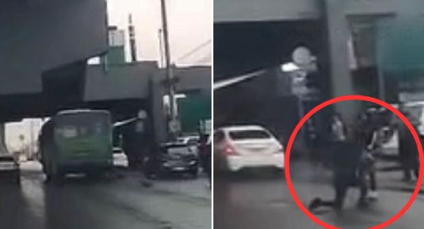 Un automovilista que circulaba a la altura de la estación del Metro San Bernabé, captó el pasado 15 de diciembre cómo esta unidad de transporte público avanzó aun y cuando la persona estaba en el suelo.