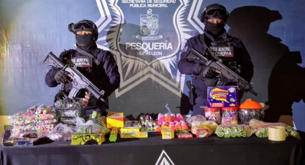 “Gracias a las acciones de vigilancia del Operativo Centinela, elementos de la Secretaría de Seguridad Pública de Pesquería llevaron a cabo el aseguramiento de aproximadamente 19 kilogramos de artificios con pólvora, al parecer pirotecnia, en la colonia Colinas de Santa Engracia”, anunciaron las autoridades del municipio periférico.