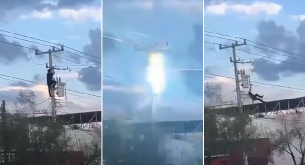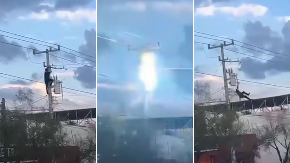 No pasó mucho tiempo para que el hombre hiciera contacto con un cable, desencadenando así su electrocución.