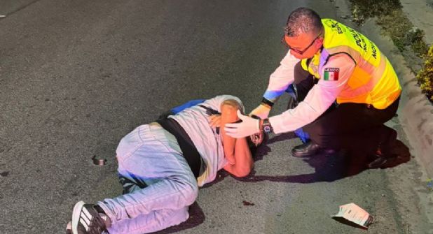 Al llegar, localizó al conductor de la motocicleta recostado sobre el pavimento y con una lesión visible en el rostro, por lo que aplicó maniobras de primeros auxilios para controlar el sangrado y le colocó un vendaje con el fin de estabilizarlo mientras se gestionaba atención médica.
