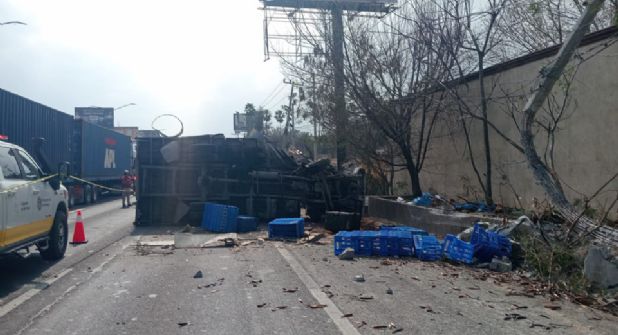 Monterrey. - Dos hombres fallecieron este lunes luego de que chocaron y volcaron el camión en el que viajaban, en la Carretera Nacional, en el municipio de Monterrey.