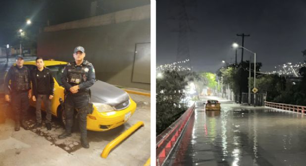 Guadalupe.- Un automovilista fue rescatado por policías de Guadalupe luego de que quedara varado en una corriente causada por una mega fuga de agua.