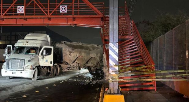 Según las autoridades, el conductor del tráiler, cuya identidad no ha sido revelada, aparentemente perdió el control de la unidad y derrapó, lo que provocó el impacto contra el puente peatonal.