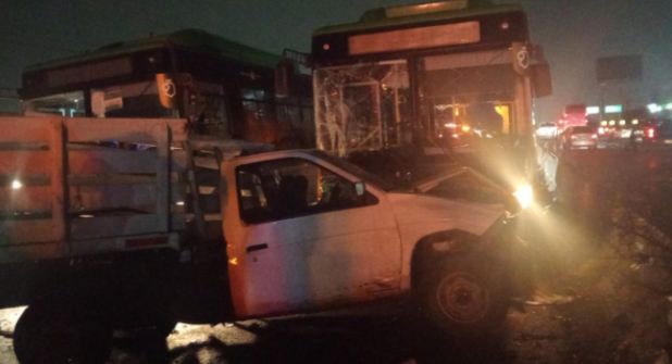 Además, se vio involucrado un camión de pasajeros de la ruta Muevoleón Real de Palmas, con matrícula 2186, operado por Jaime Sandoval Ramírez, de 40 años.