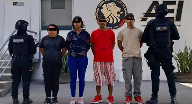 Los detenidos fueron identificados como Jesús "N", de 24 años de edad, José "N", de 47, Adriana "N", de 28, y María "N", de 50.