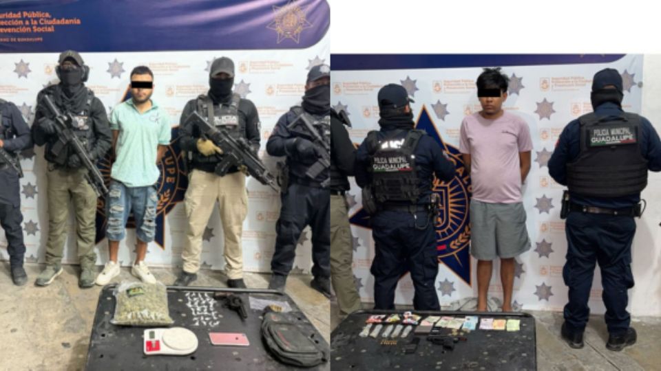 Los arrestados, identificados como Pablo "N", de 23 años, y Leonardo "N", de 25 años, fueron capturados en distintos puntos del sector, en posesión de narcóticos y armas de fuego.
