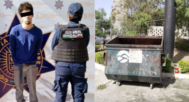 Guadalupe.- Un hombre identificado como Édgar, de 23 años, fue detenido por policías de Guadalupe tras robar presuntamente una pantalla de televisión de un restaurante y esconderse en un contenedor de basura.