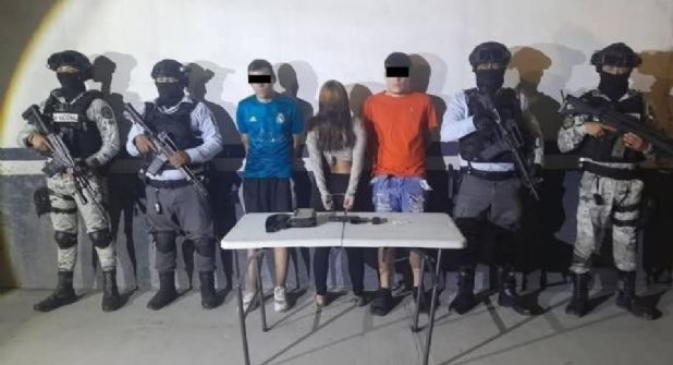 Los detenidos fueron identificados como Kevin Daniel, de 21 años, Arturo C., de 26 años, y Briana, de 17 años. Al momento de su detención, se les decomisó un arma de fuego calibre .45 con seis cartuchos útiles, así como siete dosis de la droga conocida como cristal.