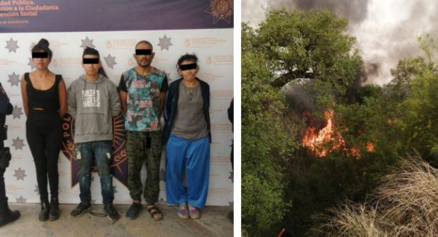 Guadalupe.- Elementos de la Secretaría de Seguridad Pública, Protección a la Ciudadanía y Prevención Social de Guadalupe detuvieron a cuatro personas que presuntamente provocaron un incendio en un terreno de maleza mientras quemaban cables de cobre.