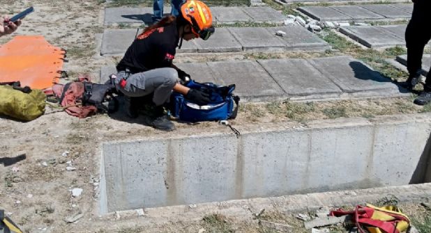 Escobedo.- Elementos de Protección Civil Nuevo León rescataron a una mujer de 61 años de edad que cayó a una tumba con una profundidad de dos metros, esto en el Panteón Parque Funeral Memoria.