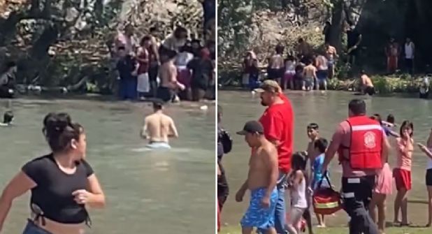 En un segundo video compartido se puede apreciar cómo al sitio llegaron elementos de la Policía Municipal y rescatistas, estos últimos quienes ingresaron al agua para brindar auxilio al joven víctima de ahogamiento.